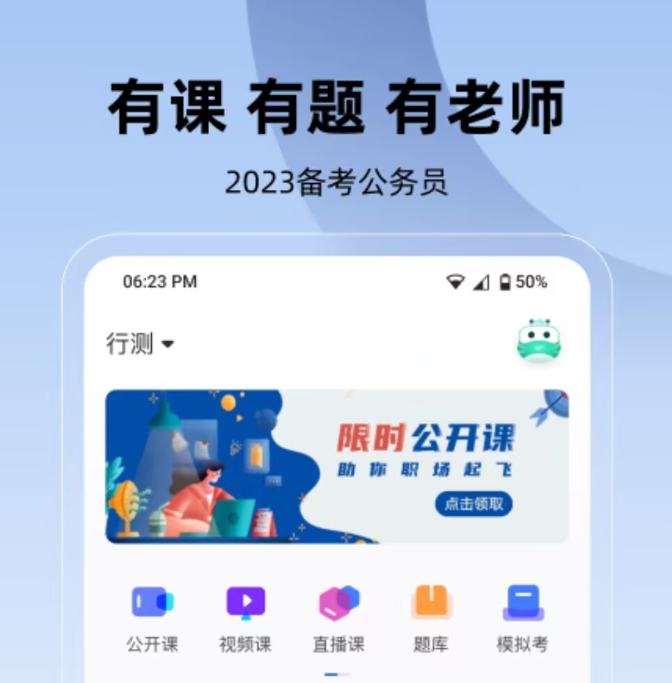 公务员里面的刷题模式更加多样,可以进行闯关刷题也可以进行仿真模考。而且会针对公务员和事业单位进行分类,有侧重点的进行刷题练习。此外,软件上还提供了很多的直播供我们在线学习,每道行测题都会配有解析,而且平台上安排了著名的老师给我们提供了在线答疑。而且里面的题目都支持离线刷,在我们坐地铁或者信号不好的时候,也可以拿出手机学习。