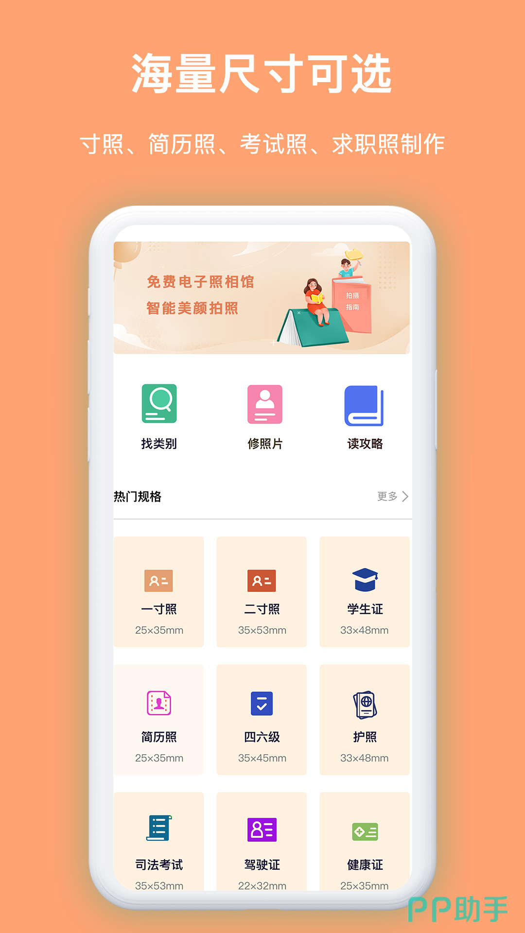 该 APP可为使用者们提供各种大小规格的证件相片,并具有智能抠图功能,可随时随地完成证件相片的制作,同时还配备了专业的美颜算法,可以帮使用者进行修改和编辑。