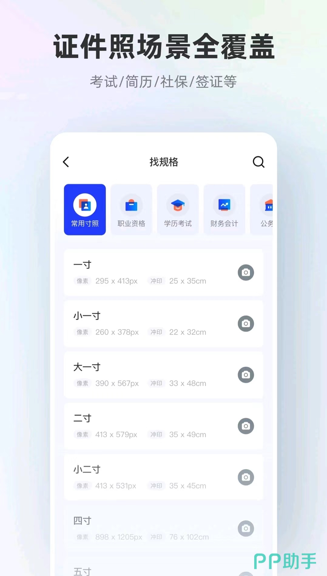 从一张普通的证件照、到各类证书考试的相片,再到各个国家的旅游签证相片,证件研究所 APP提供了各种专业的证件照制作规格,甚至还新增一项新的职业照制作的模块,让使用者可以在软件中做出不同大小的高端职业照。