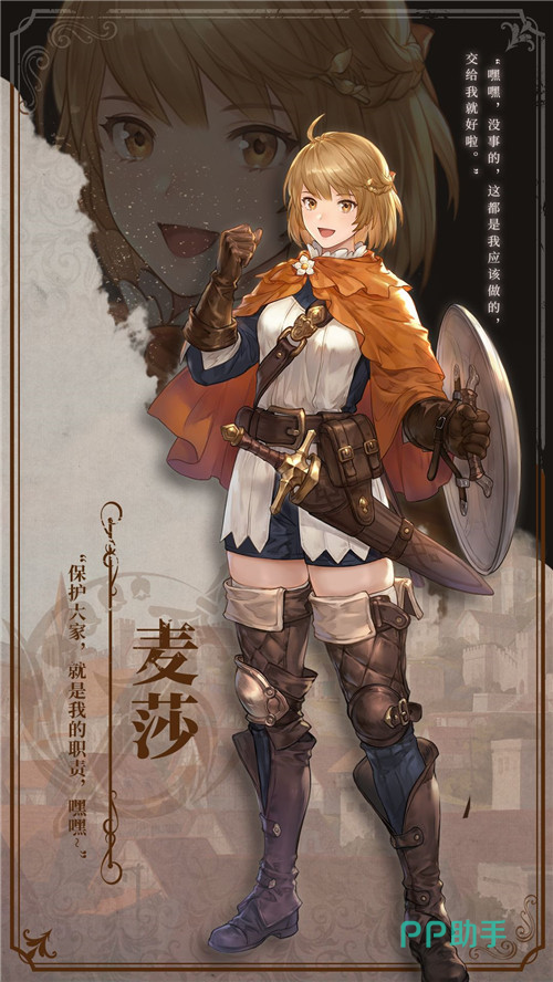 麦莎属于佣兵角色,主要的使用武器为轻型的盾牌和剑,在攻击和防御属性比较出色,其中大招为一段很强的单体伤害,面对boss具有很强的效果,被动可以增加自己的防御属性,能持续地站场输出,就是缺点速度太慢,只能用于boss战中,刷怪效率挺慢的。