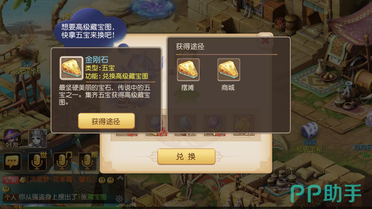 想要获得高级藏宝图就需要集齐龙鳞、金刚石、定魂珠、夜光珠、避水珠这五样宝物,去偷偷怪处合成高级藏宝图。下面我们就来进一步的了解下这五宝如何获得吧。