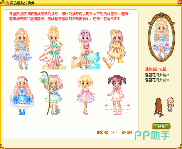 皮卡堂中的一些贵族服装都是非常好看的,想要贵族套装的玩家可以通过开通贵族来获得兑换劵,每张兑换劵可以用来购买一套贵族套装,而且贵族套装专柜每月都会上新,玩家可以在装柜中挑选自己心仪的高贵套装。