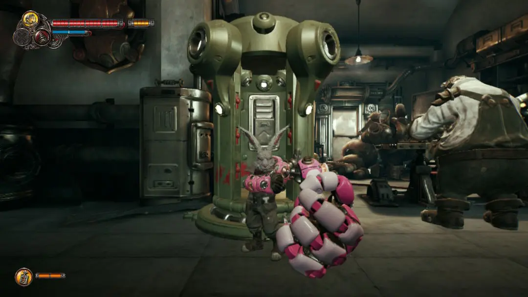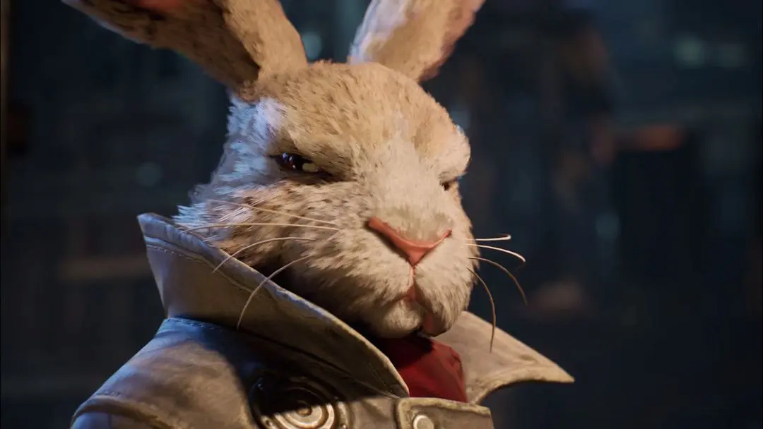各位进入游戏后就会有一段动画,里面会讲述一个角色被几个机器人追捕,它们穿梭在城市中,最终以这个角色甩掉机器人,但突然有人对其开枪作为结尾。之后大家会出现一个面馆中,此时会了解到你们操控的角色是只兔子。