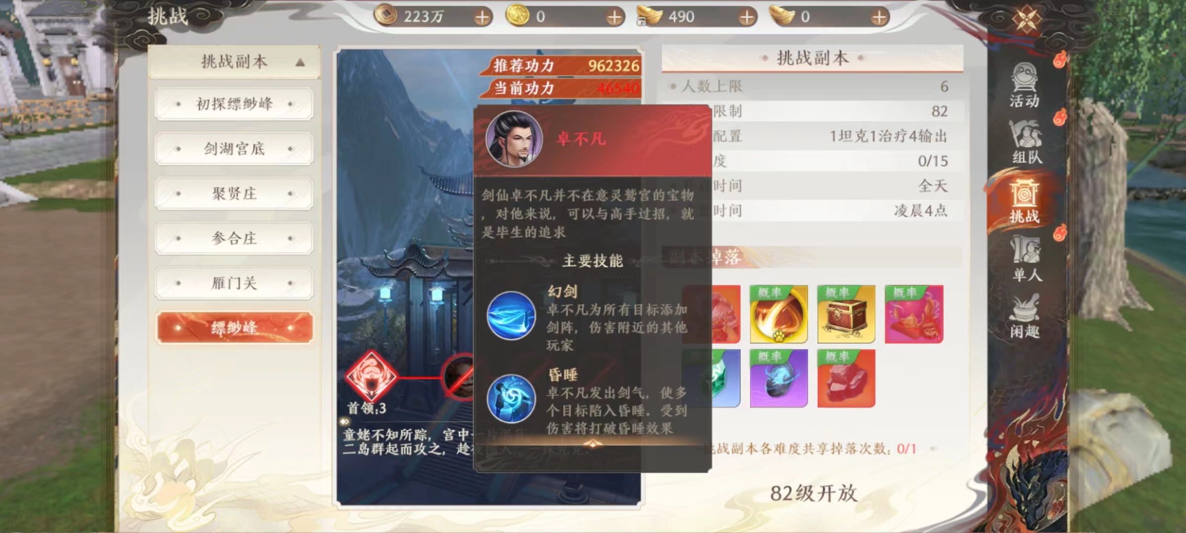 第2个卓不凡,比较难缠的技能斩梦和天如穹庐,斩梦技能是控制飞剑对路径上所遇到目标造成高额伤害,如果正处于昏睡状态则有额外加成。这就要求大家要及时将被昏睡中的队友打醒,不然会被直接秒掉。天如穹庐释放后飞剑会穿刺攻击所有玩家,并且将目标带到道路尽头,自身则持续召唤出巨型飞剑。只有快速靠近卓不凡才能阻止他释放技能,这就要求有快速位移和其他效果的队友一定要及时冲过去,不然就有团灭危险。还有就是一定不要擅自离开战斗区域,因为有灵鹫之眼技能,一旦擅自离开就会受到灵鹫攻击。