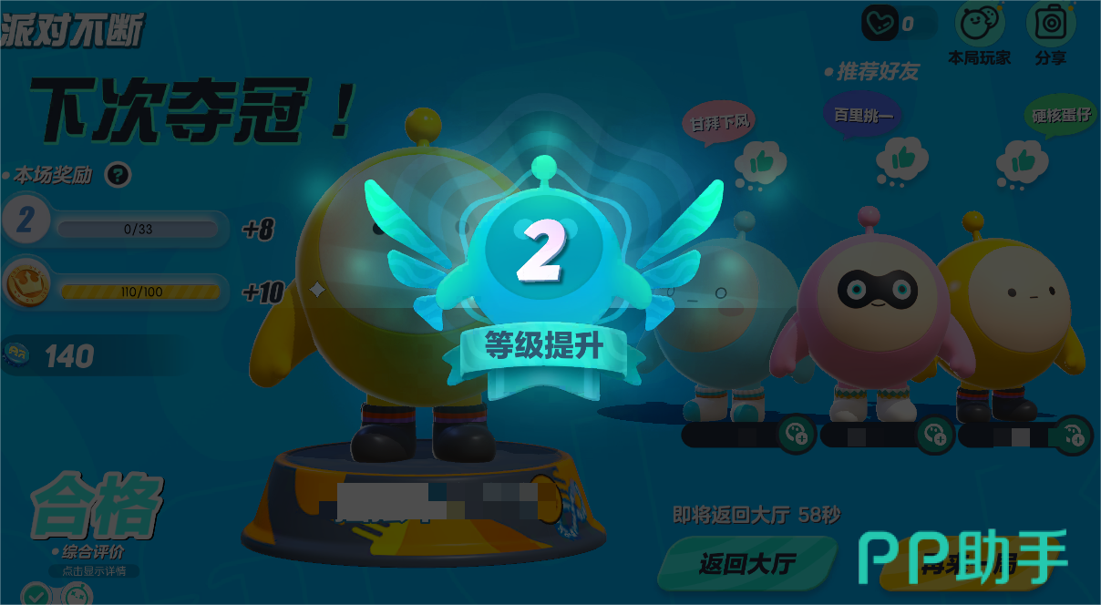 所以讲到这里,各位应该都知道“蛋仔派对角色经验有什么用”这个问题的答案了吧?作用很简单,就是让角色的等级提升,值得一提的是每场对局结束以后才会给予经验,所以如果你想通过摆烂的方式快速获取经验是行不通的,因为它在刚开始就退游戏的话会收到一个提示,这个提示正是告诉你无奖励的提示,所以各位想升级的话还是认真对待每一场游戏吧!