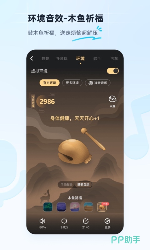 酷狗音乐这款音乐应用也是资质和年份较老的,它内部有着能和网易云媲美的正版音乐资源。它如今的最大特色就是在于他的虚拟场景音功能,用户能够选择自己喜欢的场景相关声音打造自己的白噪音。