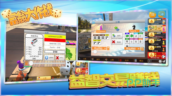 《大富豪3》是一款商战主题的游戏。不同于传统大富翁,它是以富豪模拟经营为主要玩法的,玩家将作为富豪开局,坐拥100万资产,可以随意支配资产进行投资、谈判、交易等活动,甚至建立公司融资上市,体验成为百万富翁的感觉,很有代入感。玩家在游戏中作出各种决策,例如何时买进、何时卖出、如何管理财富等,也可以很好提升钱财管理的意识。