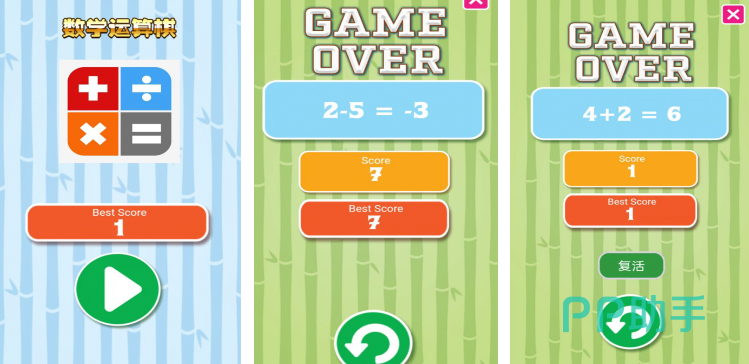 一款非常好玩的数字运算游戏,游戏玩法非常简单,游戏会随机给出加减乘除的运算题目,玩家只要在给出的选项中找到正确答案就可以了,然后就可以向下一题出发闯关了,如果算错的话就得从新发起挑战,对于还在学习加减乘除的孩子来说这款游戏真的再适合不过了,激发孩子的学习兴趣,让孩子能够爱上数学。