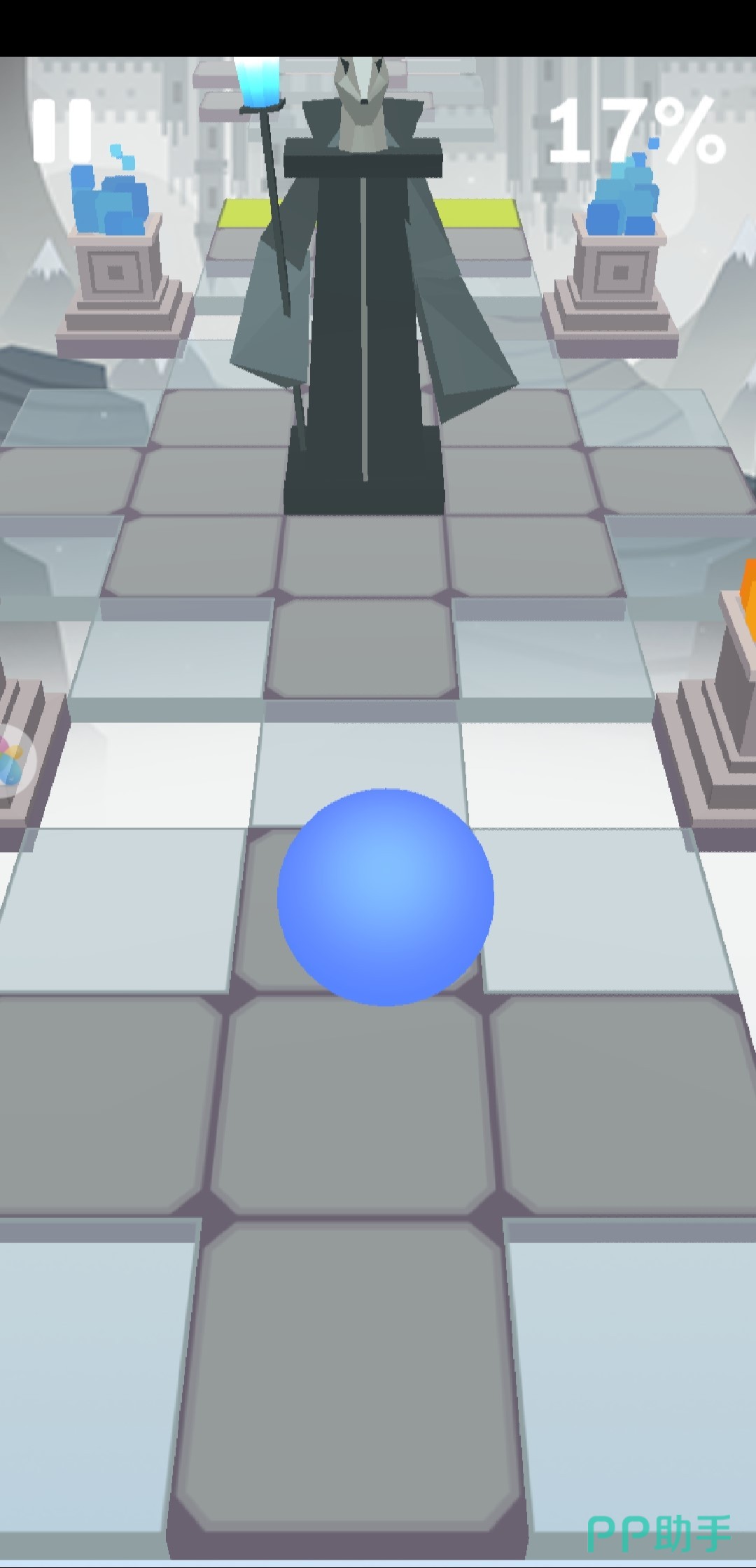1、需要注意道路上突然长出来的白色的冰花,虽然这个冰花看着漂亮,但是却极具杀伤力,一碰到一点点,滚球就会失去继续前进的机会。