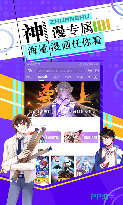 《神漫画》内含多部男性向国产原创漫画,在目前武侠、热血、玄幻类的漫画是神漫的当家题材。喜欢修真、玄幻漫画的朋友们不止可以在这里看到神漫自己平台的作者的漫画,还可以看到一些其他平台的修真漫画。