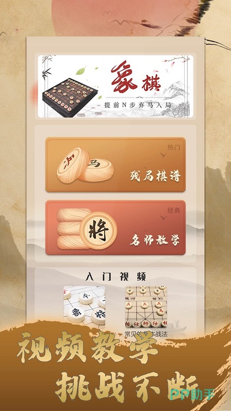适用于初学者学习的操作软件,主打中国风,特点:无限时复盘演习;单机象棋对弈模式;高手讲解象棋视频等等,内还有详细的基本技巧,手把手教学视频供玩家参考,残局模式可谓刷新你的三观,挑战你的智商。