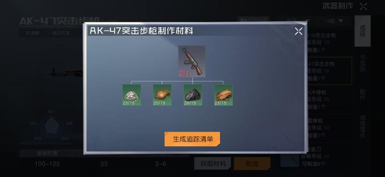 在材料都准备齐之后便可以在庄园的制造才和加工台那里进行制作了,这里刚开始会指定玩家去学会使用这两个设备。之后就可以在武器选项中找ak47这把枪械,然后便可以消耗材料进行制作了。