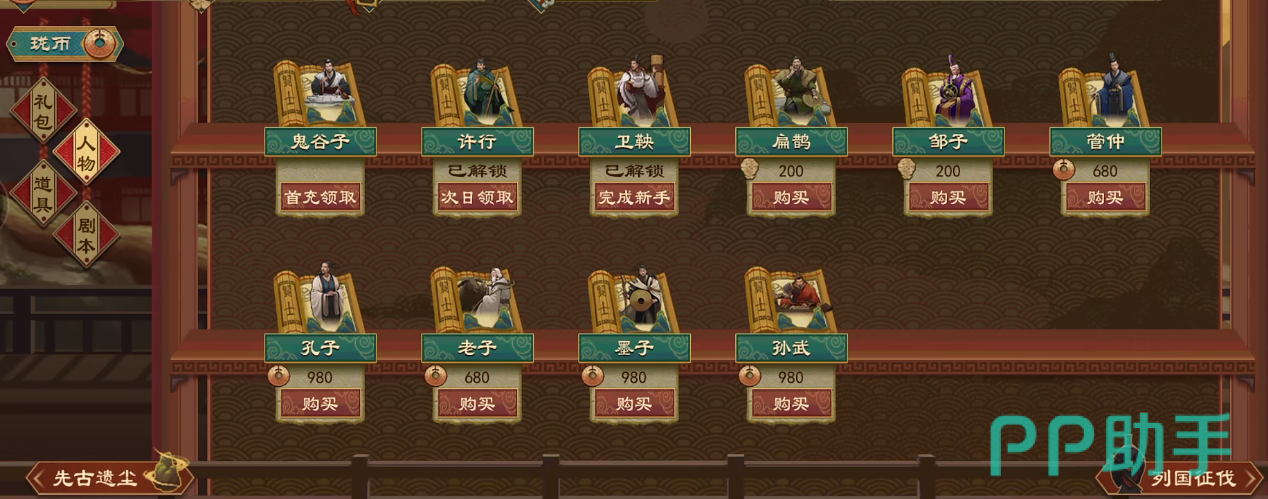 作为一款有内置商城的游戏,如果玩家想要享受更加高级的功能,那么也可选购商城的礼包、人物,比如孙武、孔子。比较值得玩家购买的有98珑币的首冲礼包,不仅有额外珑币,还赠送圣贤鬼谷子与招贤榜五个。