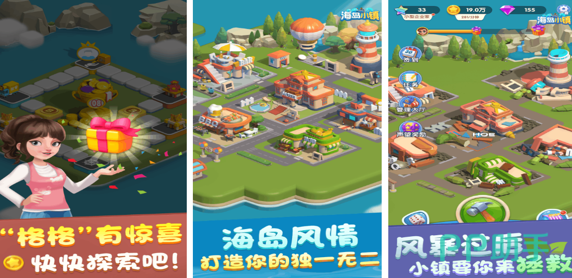 一款海岛建设经营类游戏,玩家可以在这个小岛上经营各种店面来赚取收益,在小岛上做一个产业遍布的大富翁,还可以通过走格子来获得金币,此外你还可以装饰各种店面,让小岛的形象焕然一新,当然小岛不时也会受到风暴袭击,到时需要你来拯救它。
