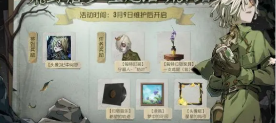 首先要知道这个活动的主题是,荒野拾梦。也就是只要玩家参加了这个节目,那么就能够跟守墓人一起去寻找他梦里面的花朵。档案活动开启以后,游戏里面也会有一个专属的页面。他只要完成了相应的任务,就可以获取一些奖励。奖励非常丰富,基本上是守墓人的皮肤,音乐,头像框,家具,涂鸦等等。