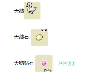 首先肯定要从小鸡开始,将小鸡变异,孵化之后会出现一只名叫咕咕鸡的动物,它可以产出五颜六色的鸡毛,那么经过变异的鸭子将会孵化出天鹅,玩家必须找到鸭子进行变异,才能获得天鹅石或者天鹅钻石。