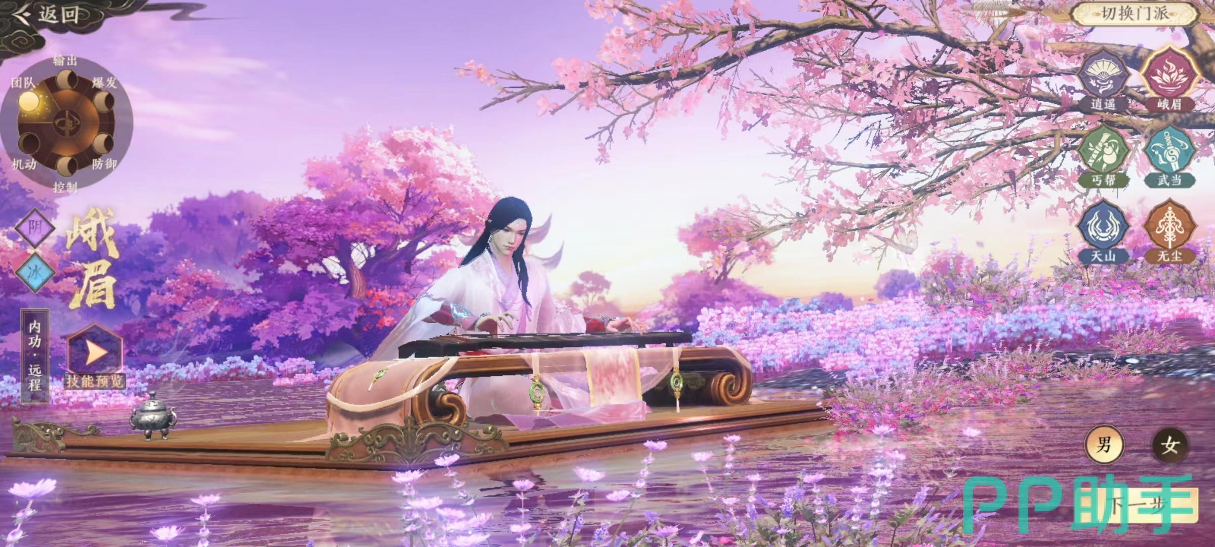 峨眉角色设计上走清新脱俗路线,因为绝大多数都为女性玩家选择,所以更重视特效方面应用。在使用轻功时候角色腾空而起,瞬间伴随着脚下粉红色荷花绽开,而后如同一只凤凰展翅般向上方飞翔而去。经过路径都会撒下大量花瓣,这些在色彩上也都符合女性审美。在所有门派轻功中,峨眉或许不是最大气的一个,但是绝对是最绚丽的。无论是设计动作还是展现出来的特效,都将峨眉清新脱俗气质以及仙气飘飘形象展现的很完美。