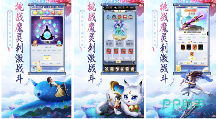 幻灵修仙传是款仙侠题材的回合制战斗手游,游戏中的角色都有着唯美的萌系画风,就连角色胯下的坐骑也有很可爱的形象。玩家们可以去参加PVE副本,在副本中与地府的恶魔作战,胜利后可以获得强化坐骑的材料。