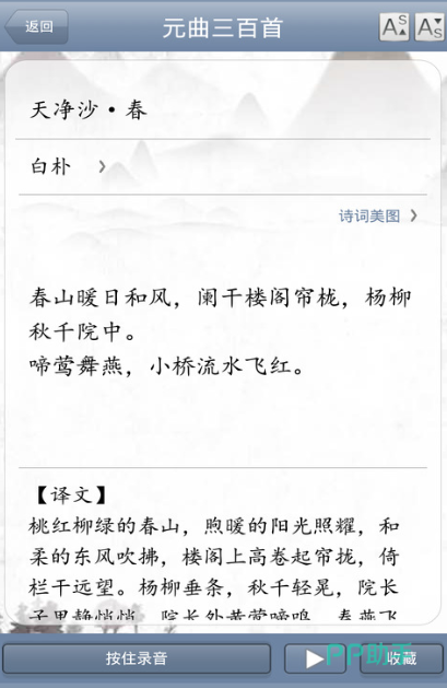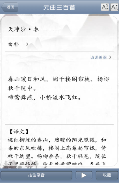 诗很美,歌曲引人入胜,词也一样优雅!词作为文学达到一个巅峰节点的成果,如果大家可以很好的学习,那么不论是提高自己的修养还是进行未来的创作都会非常有帮助!还有朗诵辅助,可以让大家一边看一边录音读!学习更高效!