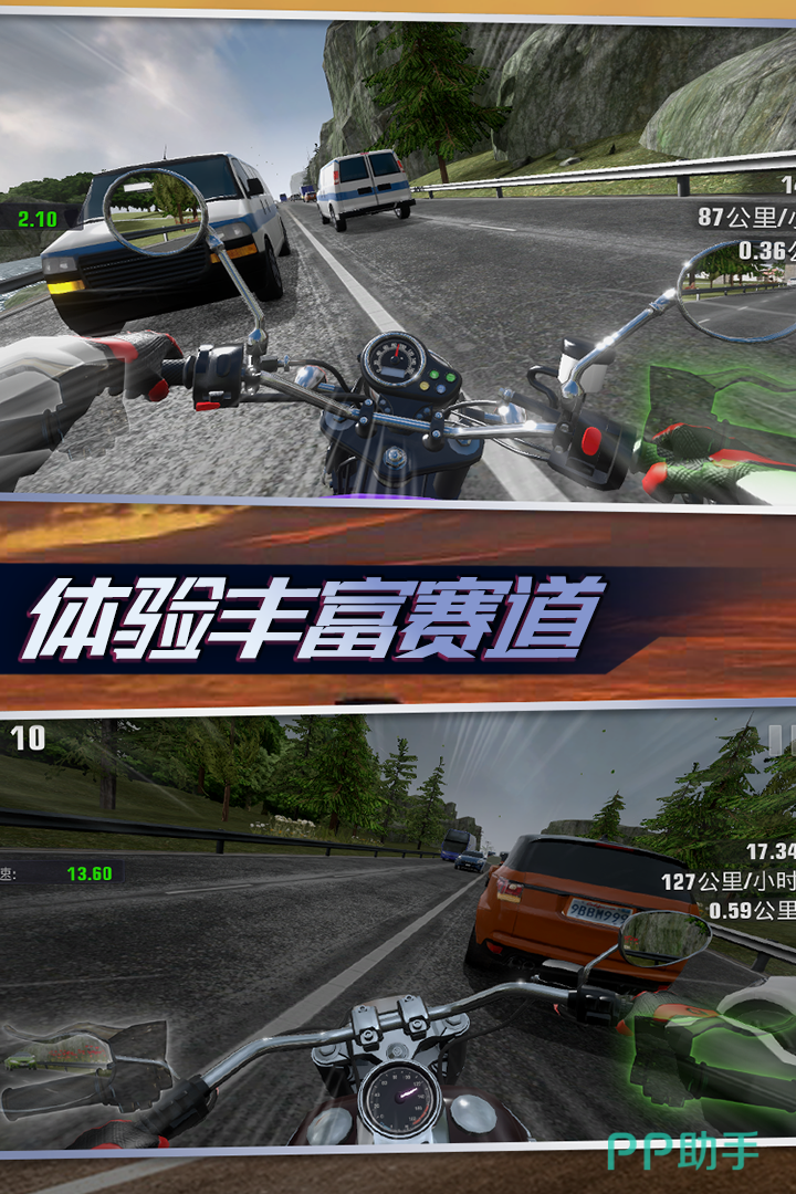 为了展现出摩托车高速状态下的竞速体验,玩法只有三个不同模式,分别为职业无尽和限时,每一种模式都有自己特色,可以根据喜好自由选择。例如在职业模式中,将会收获各种带有奖励任务,限时模式则是考验玩的技巧,在规定时间内尽力去冲刺,而无尽模式则是享受到不断超车乐趣。无论哪一种都需要选择自己喜欢的赛车,然后根据喜好自定义改变外观去参加竞赛。
