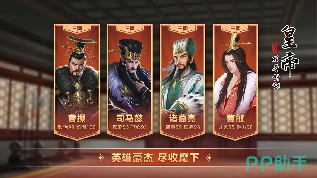 这一个模拟成为皇帝的游戏,可以满足玩家对我国古代皇帝的向往之情。在游戏里面玩家拥有后宫佳丽三千人,不同的佳丽还有精美的服装立绘,让人大饱眼福。而且作为一国之君玩家可以制定统御天下的策略,攻略城池平定四方,还能招募天下历史有名的豪杰为己所用,可玩性很高。
