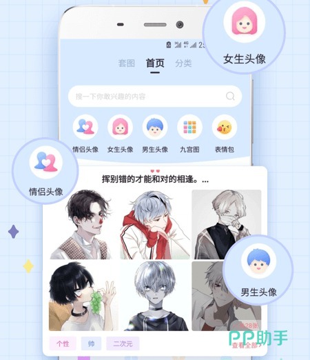想找做头像好看的软件那就是这款了。数十万的头像分享软件,快捷搜索也很方便。看中情头找不到另一半,情头匹配功能,准确找到另一半。如果觉得头像上缺点什么,文字图片工具,让你的头像更加精彩,还有很多文案让你的头像更精致。