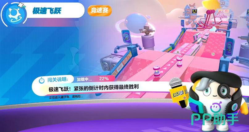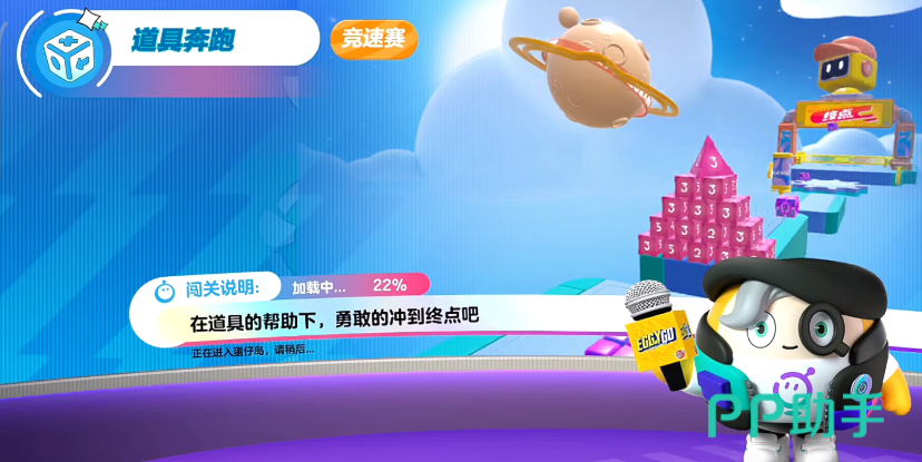 第一个关卡从名字就看出来了,肯定得利用好各种道具才能过关。刚起跑时会看到一个缩小药水,然后赶紧捡起它吃掉,就可以把身体缩小,从前面的小洞中穿过去;接着会碰到一个传送球,捡起它跳一下后,就要赶快把它扔到对面,蛋仔就会被传送过去;之后就会遇到一个粉红城堡一下的阻碍,调整下方向从它旁边直接扑过去;紧接着跳一下后,会捡起一个钩子,把它甩到对面去后,从障碍物的左边飞过去;最后会捡到一块垫脚石,打开滚动技能,直接开启三连跳就能跳过去顺利过关。