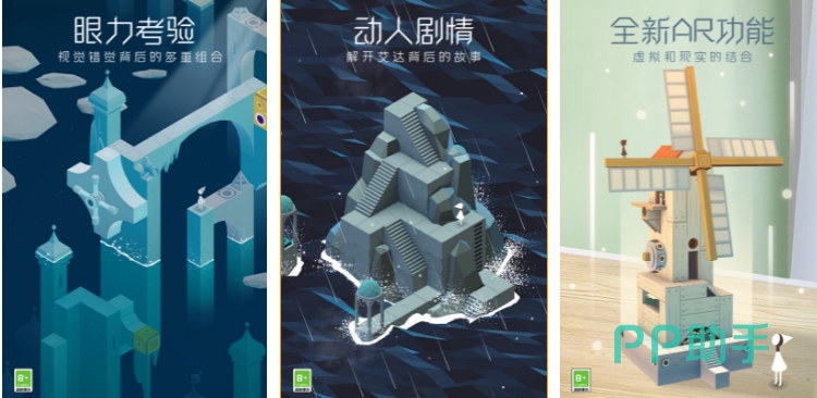 《纪念碑谷》是一款颜值非常高的冒险解谜手游,和一般解谜游戏有所区别的是,这款游戏整体画风特别治愈暖心,而且游戏节奏上特别悠闲,没有其他游戏那么强烈的紧迫感,整体上来说,与其是一个游戏,不如说是一部唯美的微电影。游戏故事说的是主人公达偷走了宫殿中的纪念碑,为了表示忏悔,主人公决定把这些纪念碑悉数归还,我们需要做的就是利用我们的智慧操纵她通过各种各样的难关,最后到终点归还纪念碑。