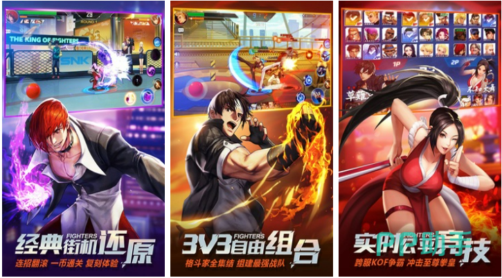 拳皇这个街机游戏玩法就跟街霸差不多,这款拳皇命运就是有拳皇人物的实时对战游戏,这款游戏完美还原了拳皇里所有人物的必杀技,玩家可以召唤三个拳皇人物组成队伍去参加KOF大会,赶紧来跟拳皇里的格斗家一起作战吧。