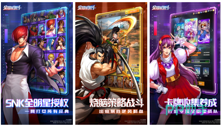 全明星激斗游戏里的角色大家应该都很眼熟,全都是侍魂、拳皇、饿狼传说等游戏中的角色,玩家们可以抽卡得到这些SNK公司旗下的角色,并控制这些角色与很多反派敌人对战,喜欢日本游戏的玩家们赶紧来下载吧。