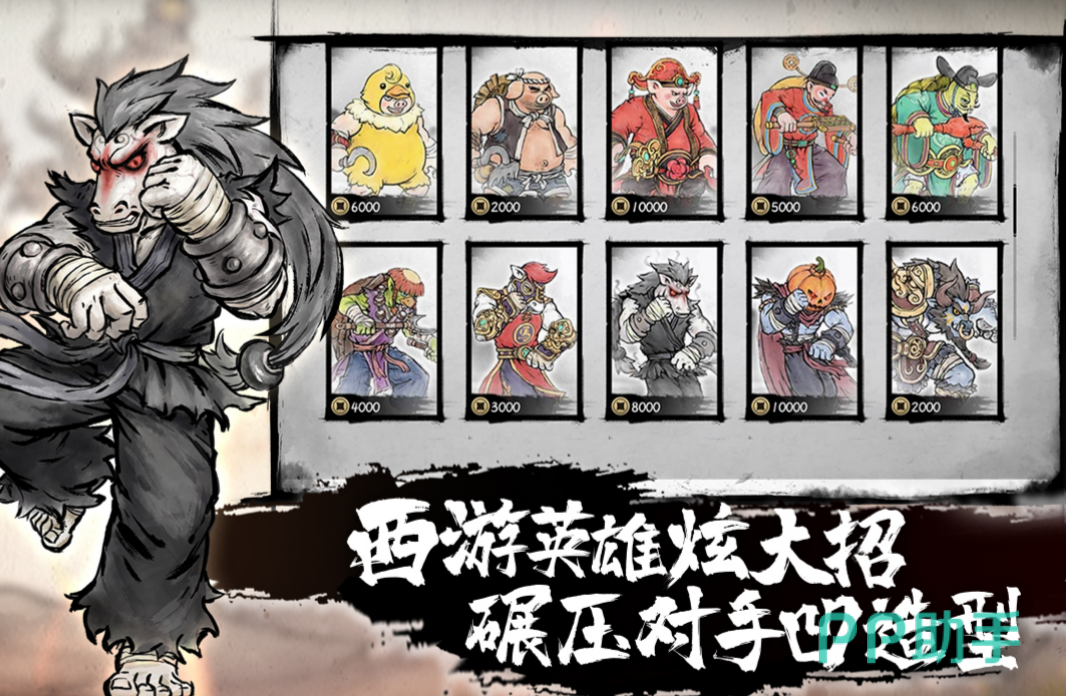 这是款跟街霸类似的对打游戏,游戏中的角色全都是西游记中出场的人,比如红孩儿、哪吒、孙悟空等人,玩家刚进入游戏会得到孙悟空这个英雄,你可以控制孙悟空去跟不同的妖怪们对打,战胜其他妖怪就可以得到大量铜币奖励。