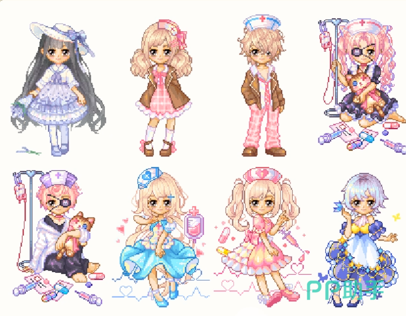 如果想要搭配的话,也是有很多的选项的,一个就是原来的套装搭配,另一个就可以混搭其他的护士服装,可以看到,护士服装的裙子都是非常的可爱的,无论怎么搭配都不会显得违和。