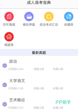 这一款软件简直就是成人高考的宝典,其中拥有历年真题,拥有考点总会,此外还有错题库收藏库,以及模拟押题等等。在这一款软件当中包括很多科目题库,比如大学语文、艺术概论、数学、英语、教育理论、民法、医学综合、政治等众多科目,能够满足用户众多的需求,而且这款软件是非常优秀的,可以说是复习利器,对于众多的用户来说可以使用软件来碎划片时间,随时随地就可以学习练习。