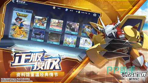 将数码宝贝的世界重新再现到玩家的眼前,游戏根据动漫当中的地图和世界背景设计关卡和玩家探索的超大型地图,游戏同时也延续了原版游戏当中最出名的进化合体玩法,玩家可以收集相对应的宠物来合体进化,当然单个宠物也会伴随着进化,玩家可以通过道具来加强宠物的等级和属性,也可以通过战斗来帮助宠物获取经验。