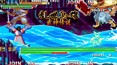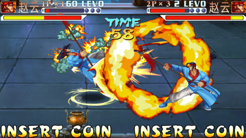 标准剧情格斗类型的横板格斗街机游戏,属于是和天蚕变同一个时期的类似的街机游戏,游戏当中玩家体验的剧情都是来自三国时期的记载,玩家操控的角色也从最开始的基础三角色变成了各大知名游戏角色,玩家对于武器的选择和角色使用不同武器时候的动作也完全不一样,选择合适的武器面对不同的敌人。