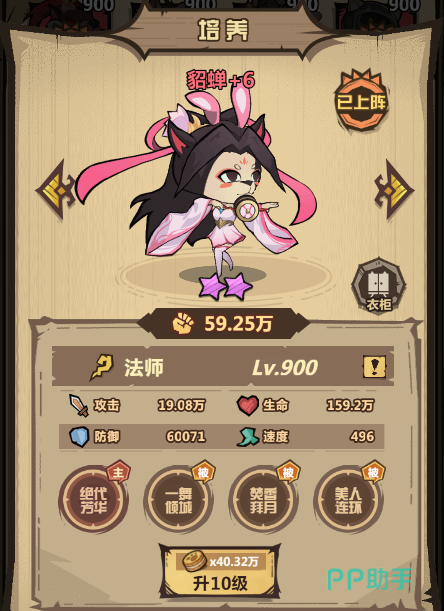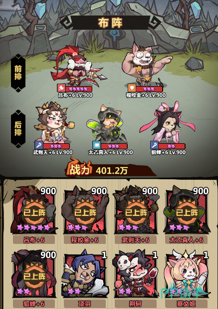 然后再放一个吕布作为输出使用,但是既然想让做一个主貂蝉的队伍,那么我们就得想办法提升它的输出,这时候就可以用上武则天和太乙真人了。