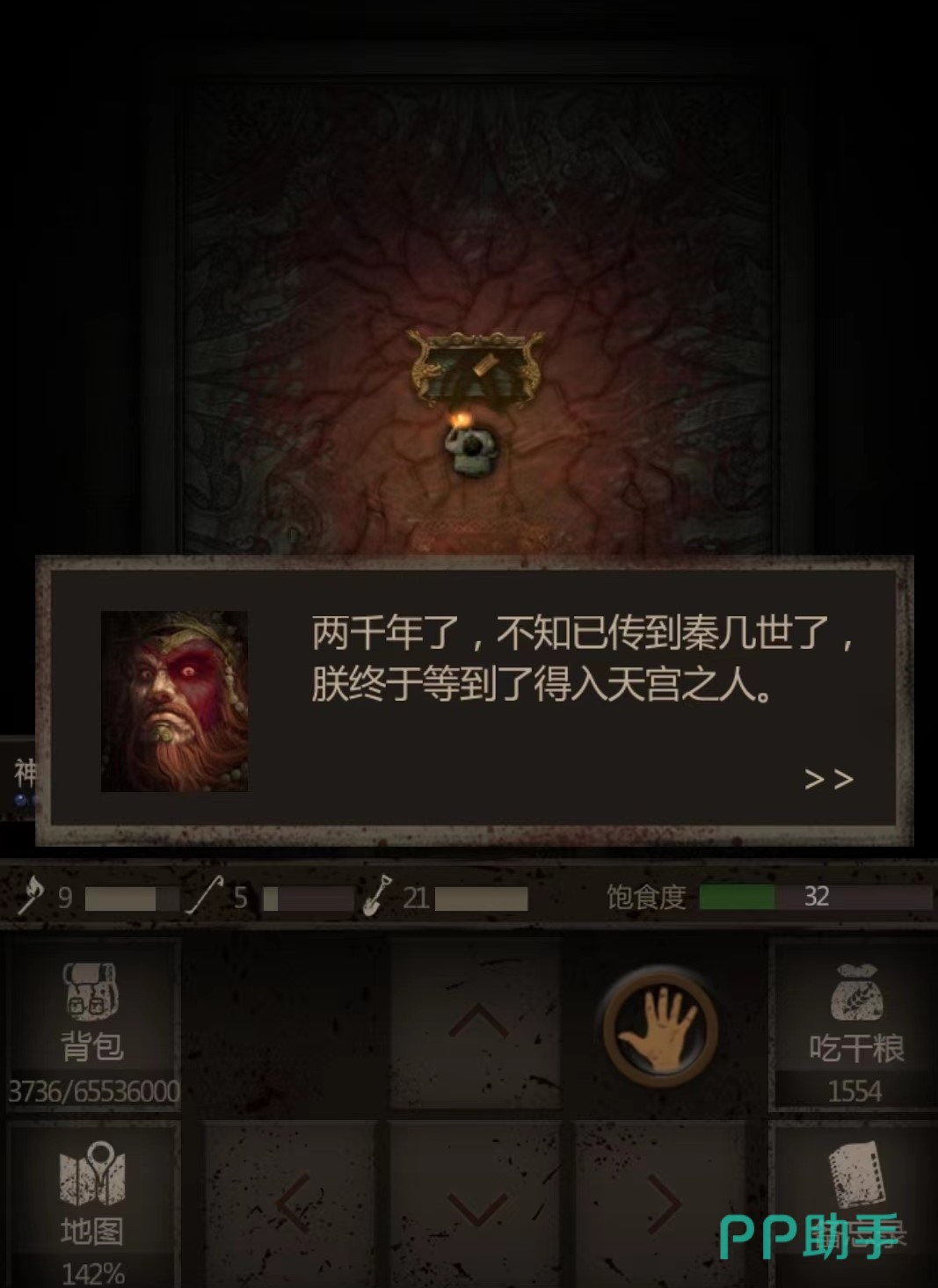 第三部分:在走过了上述的艰难路程之后,就来到了始皇面前。始皇这块,地图上显示面积很大,但是没有怪,和始皇对话之后,玩家恩需要去破坏符咒,然后就结束了这个地图的探索。这里地图上的瓶瓶罐罐建议不要踩,受伤概率比较大。缺物资去外面刷。