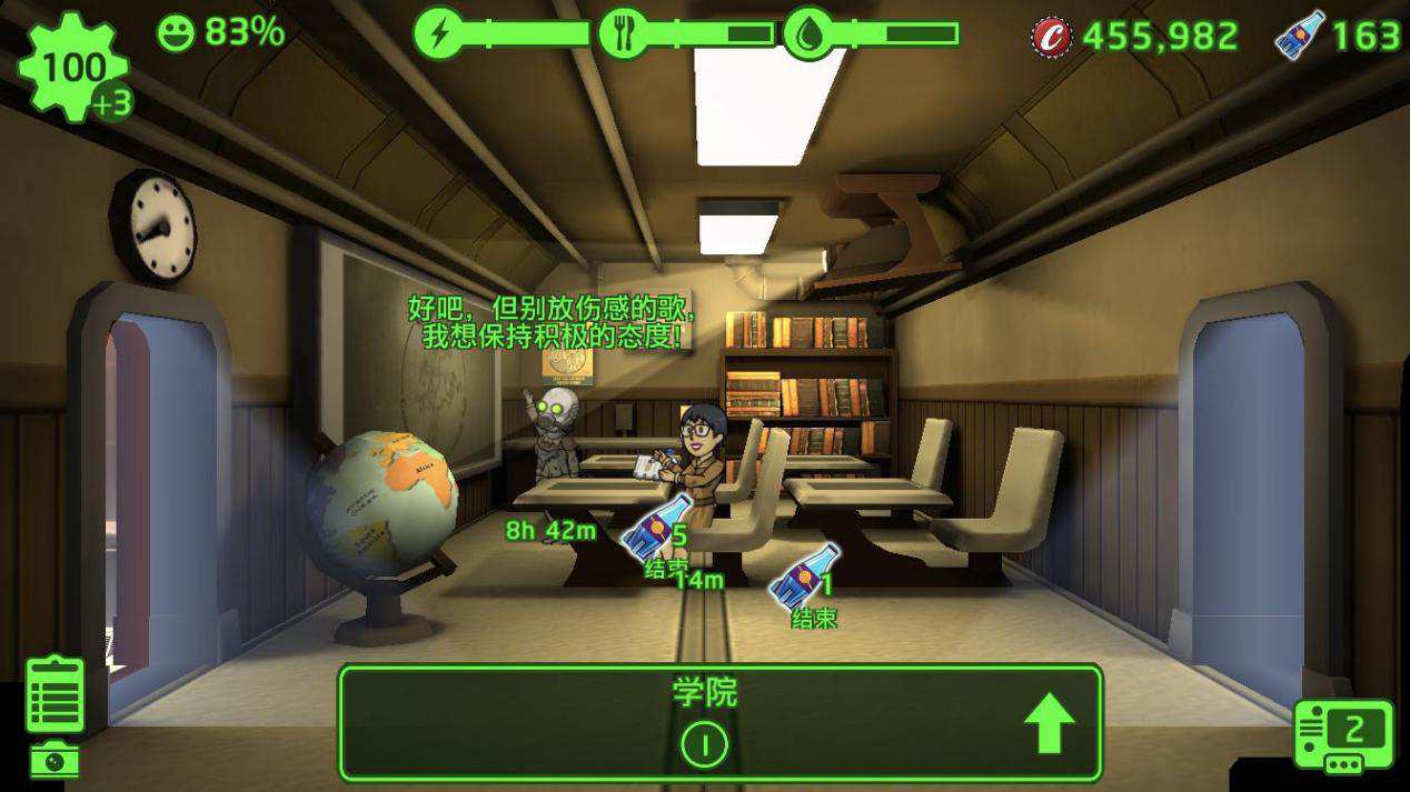 单间学院需要4500消耗瓶盖升级成为【学院】,摧毁获得300瓶盖。