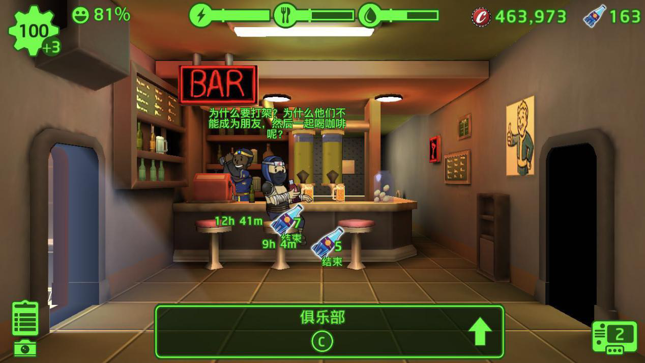 单间酒吧需要4500消耗瓶盖升级成为【俱乐部】,摧毁获得300瓶盖。