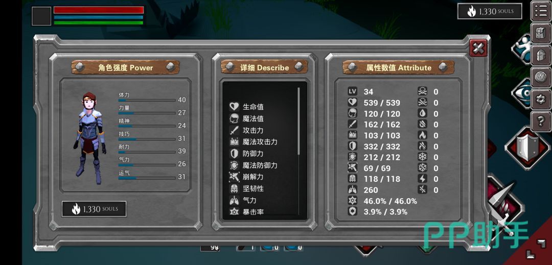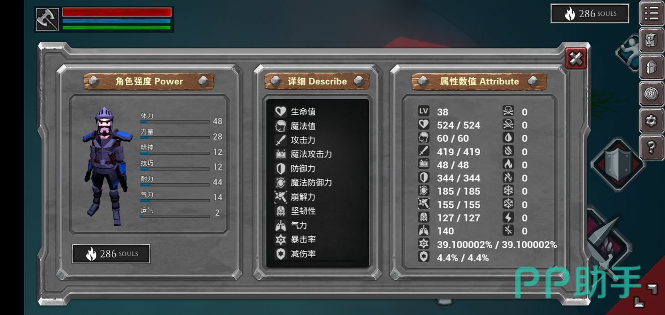 骑士存活能力强,正好克制关卡中的小怪和大BOSS。在培养职业时,大家按照不同武器加点,培养气力值、耐力和力量。