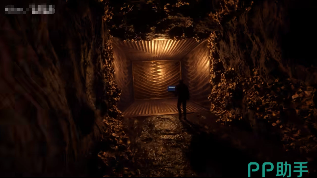 快走到最后的窄口的时候,会跳出来一个变异怪从背后攻击玩家,出来之前是有音效提示的,玩家要提前回头射击。再往前一点就能看到黄色的光亮,那就是我们最终的目的地,魔方的内部,启动魔方之后就会看到穿越的平行宇宙,全是高科技的高楼大厦。