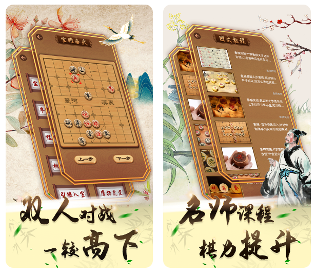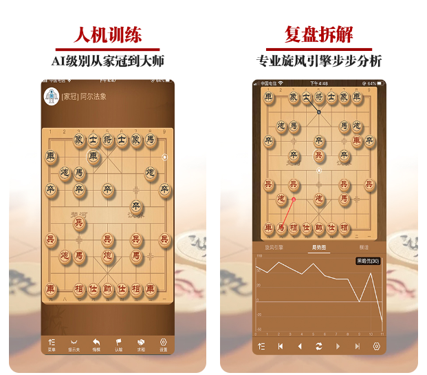 这款象棋软件可以让你体验到新手局也能体验到大师局,且对局完后还会给你提供复盘服务。这款app是最好的选择。在这里,不仅有真人对战,也有电脑对战,职业玩家甚至可以找私人教练,进行在线授课。