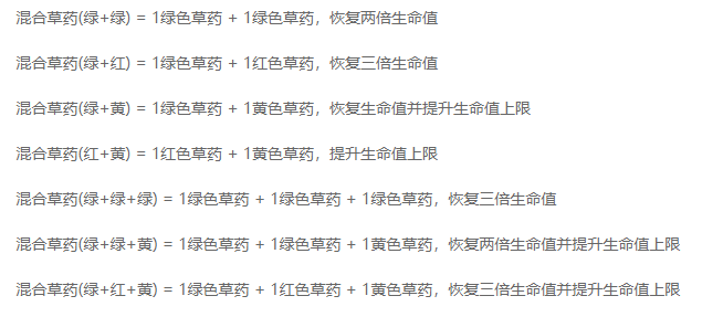 草药种类就比较多,可以成倍恢复生命值,或者是提升生命值上限,一般在打BOSS战的时候,两者一起使用可以起到非常好的效果,还有厉害的玩家可以一边打一边弄药吃,对于草药的配方还是需要烂熟于心,小编也为大家准备好了。