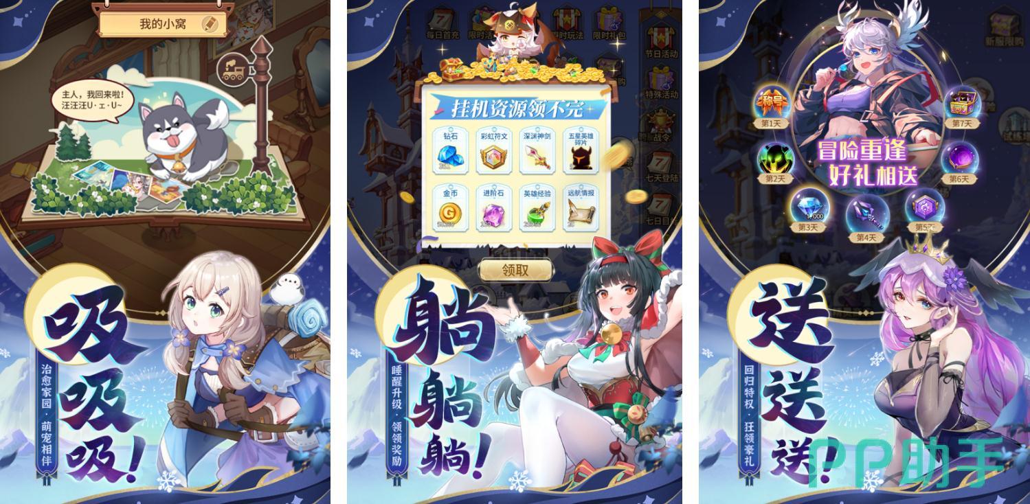 挂机玩法模式的加入,让玩家在本作当中可以更轻松的培养各类角色,而丰富的角色也将在不同的模式当中进行解锁。玩家主要依靠阵容编排的方式,来提升自己的战斗能力,游戏的闯关玩法也是自动进行战斗,而各位还可以在爬塔模式当中与更多高战力小队进行对抗,获胜之后还可以赢得丰富奖励。