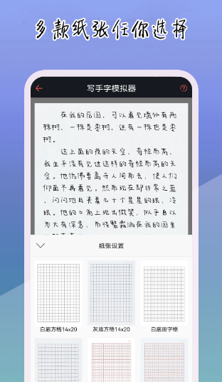 需要手抄一篇文章,或者是一篇试卷,但是又特别浪费时间的话,我们可以下载手写模拟器,其中有很多字体可以选择,并能够调节字体大小和字体间距,轻松制作成一篇手写文章。制作出来之后可以上传,可以分享,另外也可以打印。我们在手写的过程当中可能会遇到写错的现象,而这一款软件为了能够增加逼真度,用错字涂抹效果以及阴影褶皱效果,一款相当实用的仿手写软件。