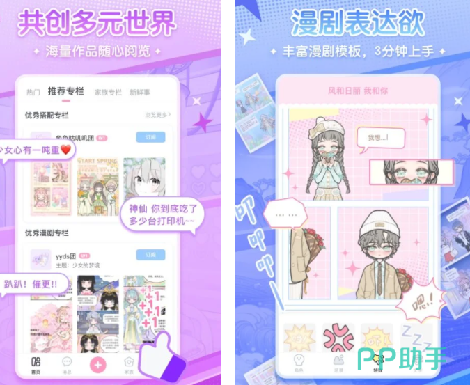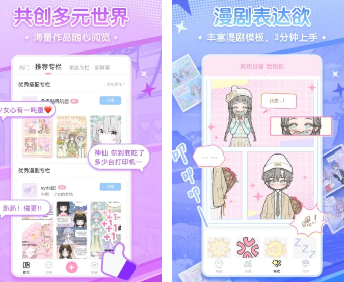 既可以亲自画漫画也可以追番剧的软件,里面有多种风格漫画模板、定制动漫人物、可爱动漫特效等素材,用户可以亲自创造个性卡通角色,挑选jk服、汉服古装等可盐可甜搭配。新手用户可以点击软件里面设置好的动态海报模板,发挥脑洞粘贴动漫人物与贴纸,分享你的无限创意。下载这个有爱的软件,共创漫画多元世界吧!