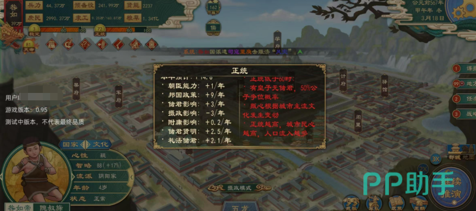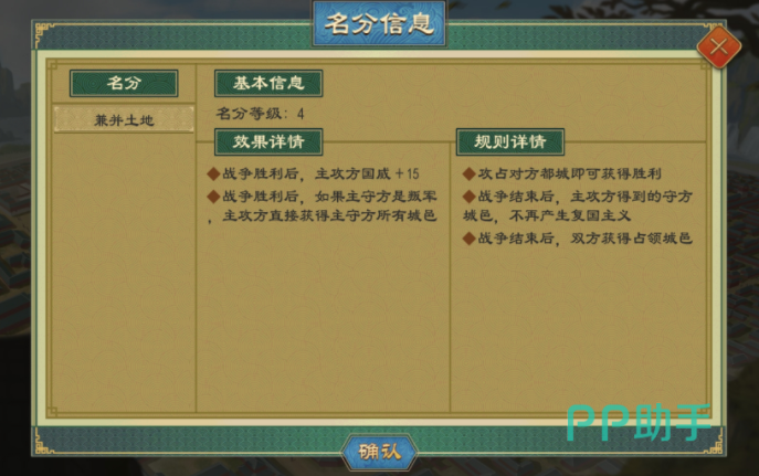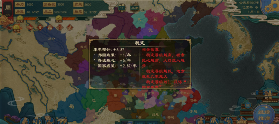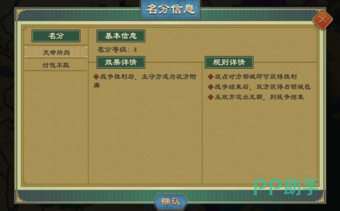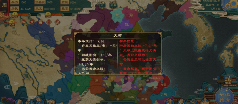 而随着玩家的大一统进程不断推进,天命值也会随着玩家战争的胜利而不断的进行提升。等到一统地图的时候,大家的天命值也会达到满分的样子。