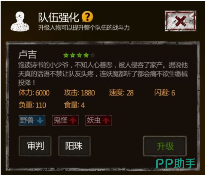 开局前为自己增加一个护盾,随时准备战斗,同时让队伍的所有人都增加一定血量,更好的准备接下来的战斗,但是他的体力不多,所以在前期需要发挥自身优势。