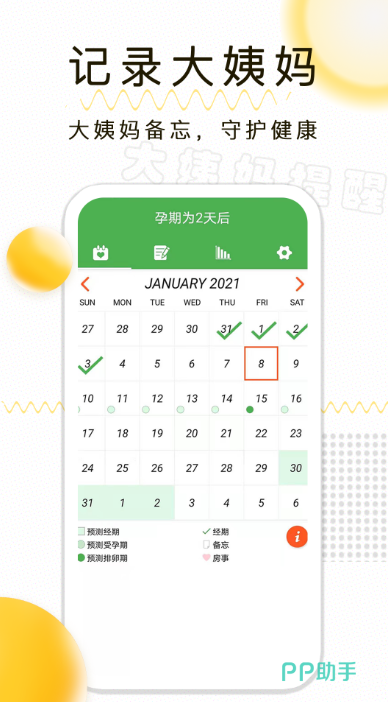 作为现代女性,我们必须面对一个不可避免的问题——经期。但是很多人不了解月经的app哪个最好用,小编为大家带来热门的记录经期软件大全推荐,每个月准时来临的经期不仅会给我们带来身体上的不适和疼痛,还会对我们的生活、工作和运动计划造成影响。但是,随着科技的发展,我们有了更多有效管理经期的方法,其中最简单、最方便的方法就是使用经期管理软件。经期管理软件可以帮助我们追踪我们的经期、排卵周期、月经等生理事件,并且提供预测和分析功能,以便更好地规划我们的日常生活。无论是需要计划旅行、顺延生产期限,还是只是单纯地想要跟踪我们的身体变化,经期管理软件都可以帮我们轻松应对这些问题。