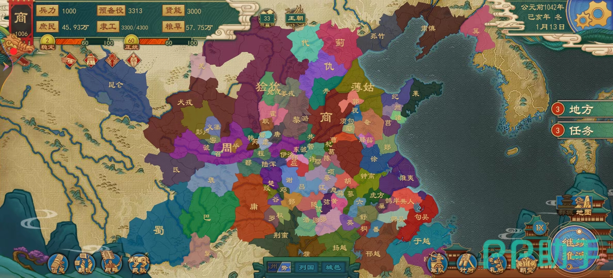 这些都会影响到一个国家的整体发展,例如在国家前期,以农家大臣为主可以快速发展国力,道家可以用来增阿人口,而到了国家的后期也有不同的方向可以选择,兵家可以提升士兵的训练效果,增加士兵战斗力,墨家则可以用来训练间谍,不战而屈人之兵,至于阴阳家的功效和祭祀效果有关,不建议大家去选择。